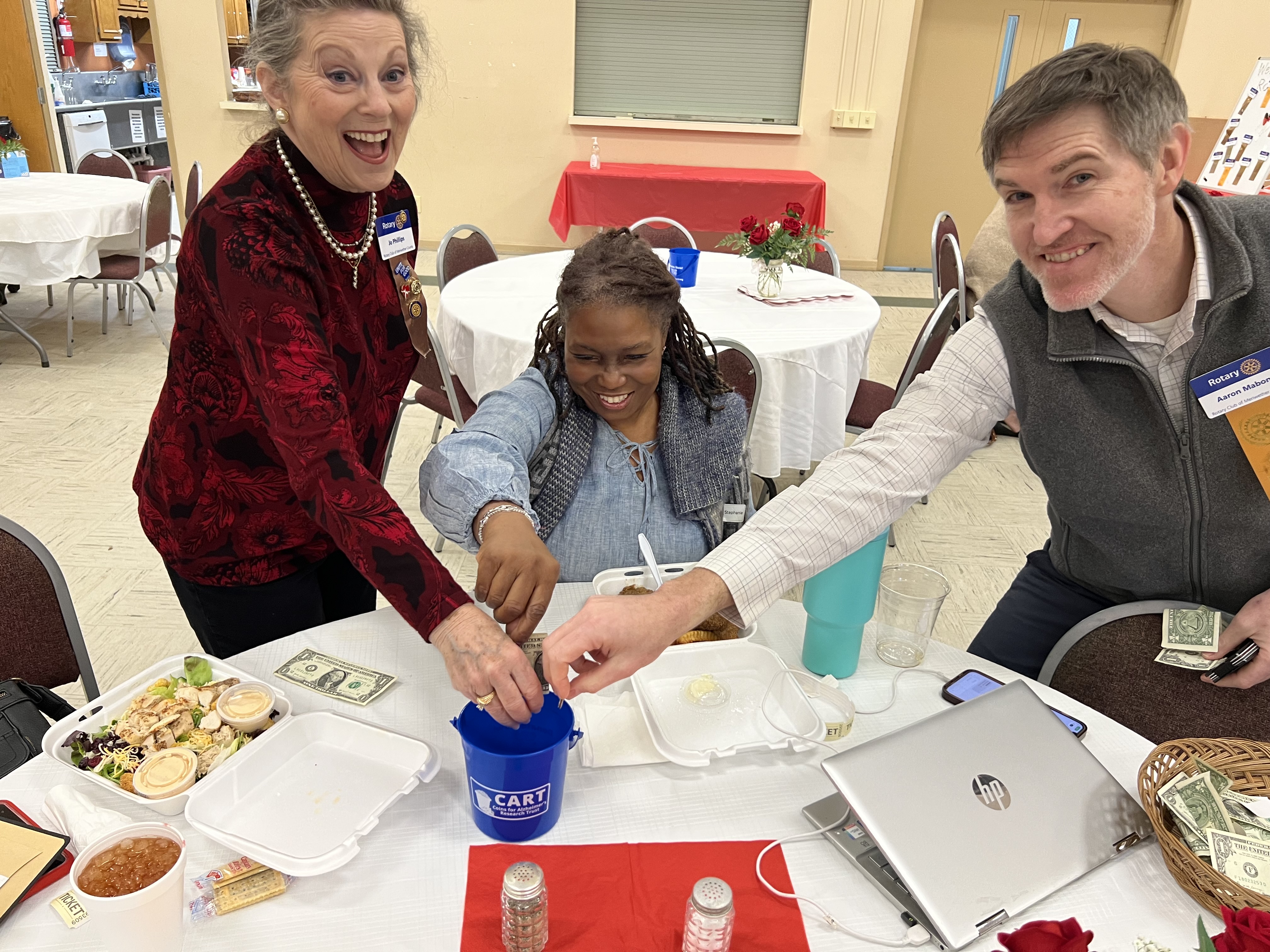Meriwether County Rotary Club members are making a meaningful impact in the fight against Alzheimer's disease by contributing their pocket change to the CART Fund buckets during their weekly meetings.